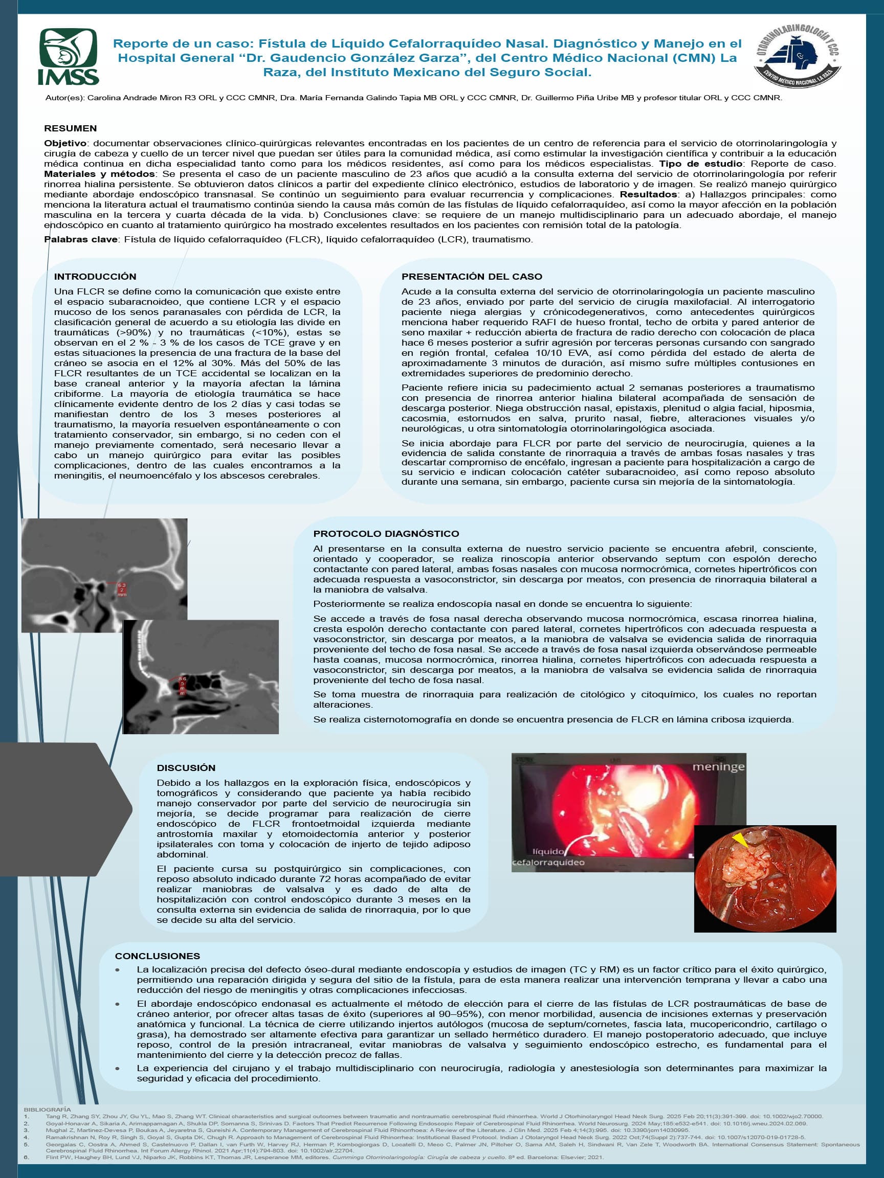 Reporte de un caso: fístula de líquido cefalorraquídeo nasal. Abordaje y manejo en el Hospital General “Dr. Gaudencio González Garza”, del Centro Médico Nacional (CMN) La Raza, del Instituto Mexicano del Seguro Social.